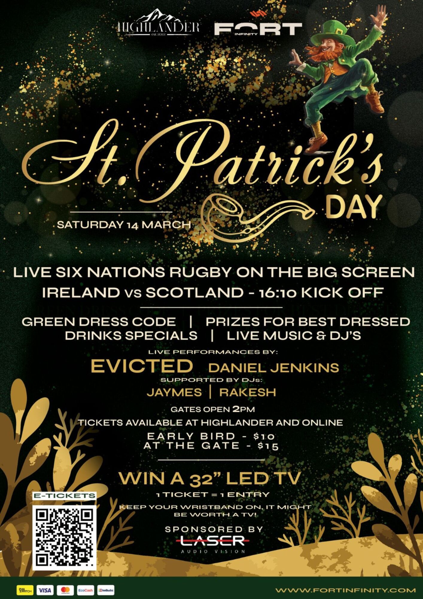 St. Patrick’s Day at Highlander Saturday 14 March | From 2PM | Limited Early Bird: $10 | General Admission: $15 | Dress code: Green.