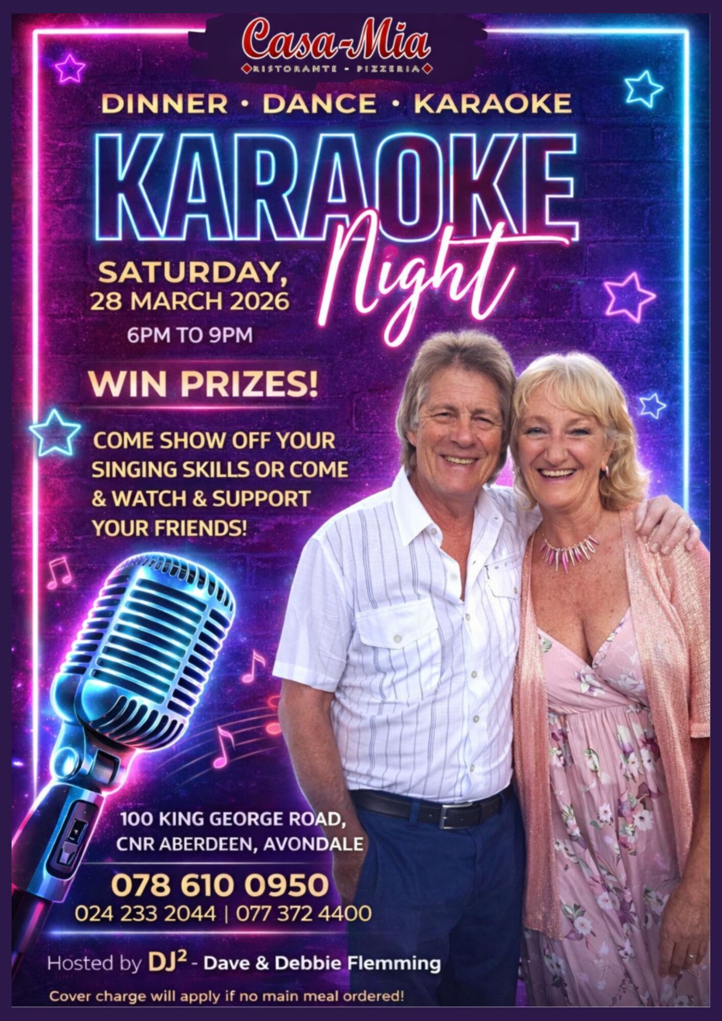 Casa Mia: Karaoke Night Saturday, 28th March | 6 pm to 9 pm | Hosted by DJ2 | Come show off your singing skills | Come support your friends.