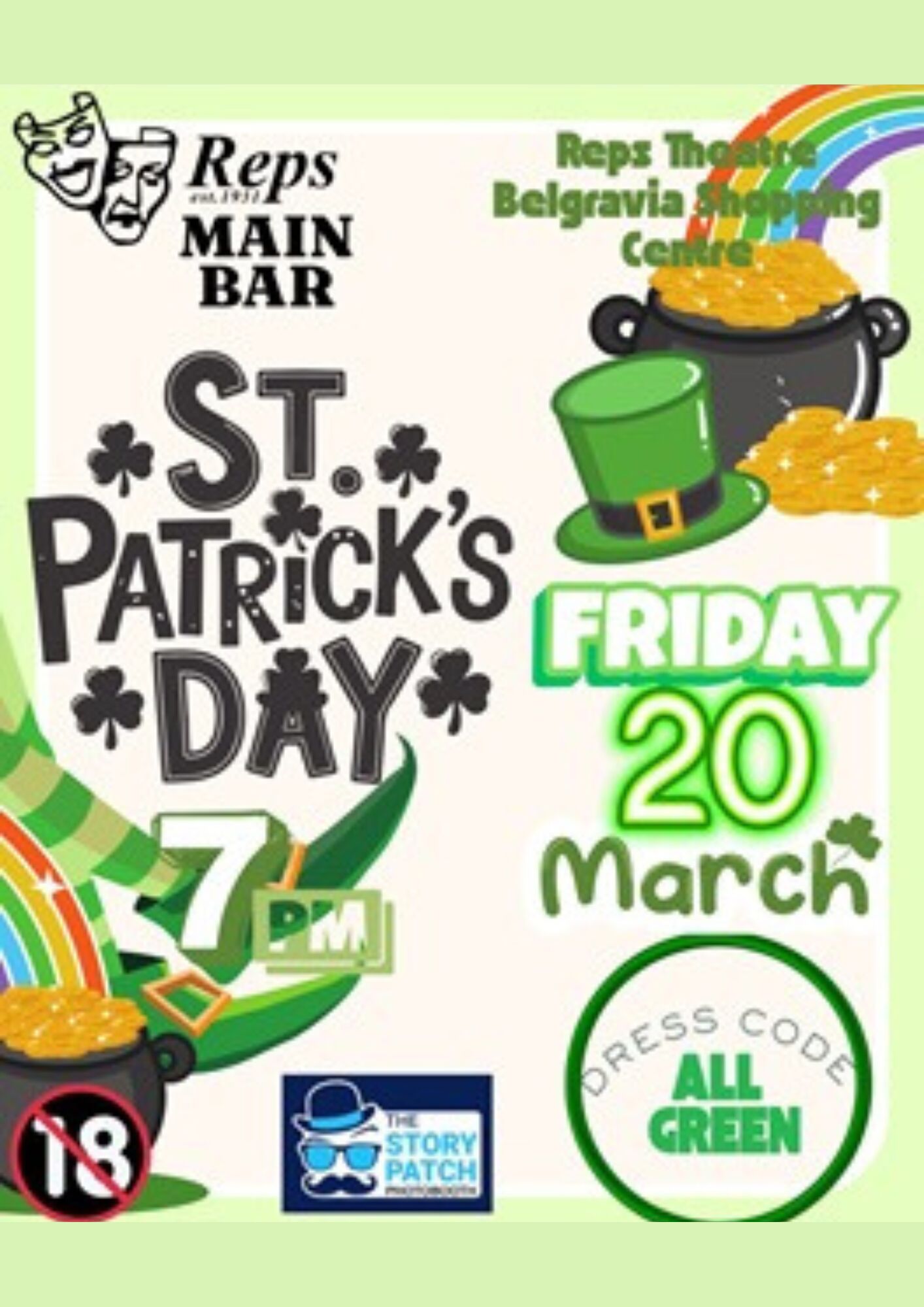 Friday, 20th March | 7 pm | Dress code - All green | Reps theatre - Belgravia Shopping Centre | Save the date